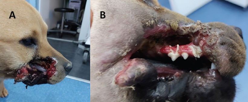 U kliniku je primljen pas, star šest godina, sa teškim oštećenjem desne gornje usne promera čak 10 cm. Defekt je bio toliko dubok da su se spolja videli zubi, desni i vilična kost. Pored infekcije, pas je patio i od uznapredovale bolesti desni, što je hirurški zahvat činilo dodatno rizičnim.